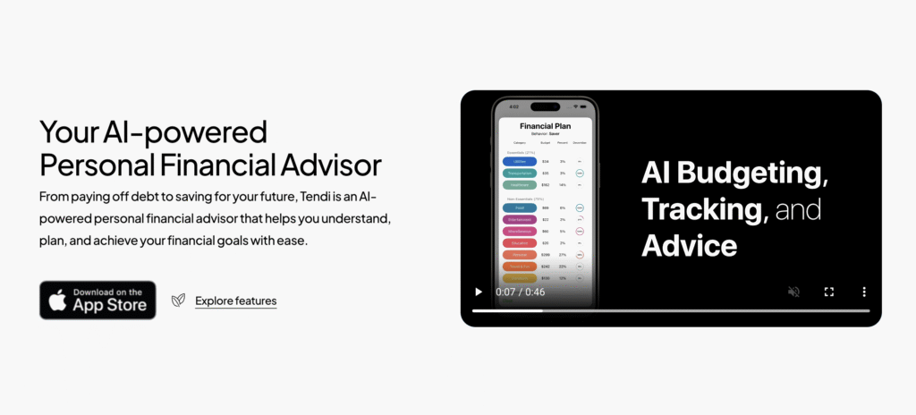 Tendi.aiteljes egészében az AI körül épült, és kiképezték a GPT-4 felülmúlására a CFP (Certified Financial Planner) vizsga során. Ez minden felhasználó számára 0 és 100 közötti egyedi pénzügyi pontszámot ad, majd költségvetést és kihívásokat kínál annak javításához.