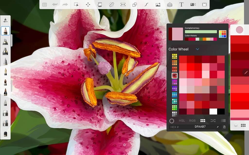 Előnyök:Több mint 80 kefe és egyéb rajzszerszám, rétegtartás (és keverési módok), és exportál több formátumba, beleértve a JPEG -t, PNG -t vagy PSD -t az Adobe Photoshopba történő importáláshoz.