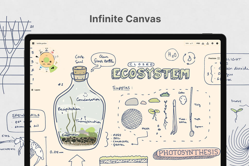 A Concepts egyedülálló rajzélményt kínál, mivel végtelen vászonja van. Ez azt jelenti, hogy kísérletezhet, ötleteket generálhat, vagy csak doodle -t tudna aggódnia, hogy elfogy a hely. Hihetetlenül felhasználóbarát is, és számos előre beállított kefét, eszközt és effektusot kínál.