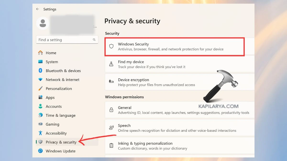 2. Lépjen a „Windows Security” elemre, és kattintson rá.