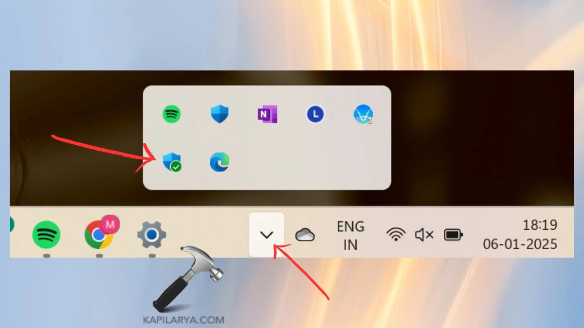 2. Ha nem látja a pajzs ikont, kattintson a felfelé mutató nyílra a kibontásához.