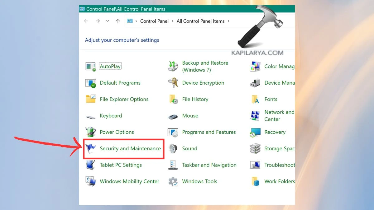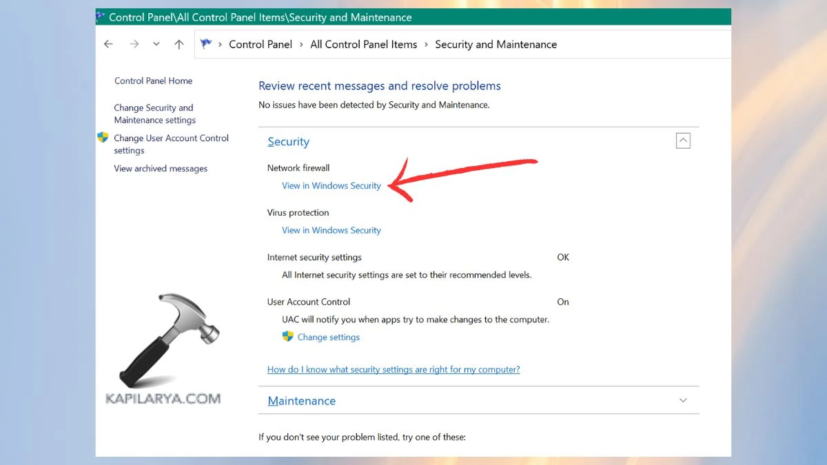2. Lépjen a „Biztonság és karbantartás” fülre.