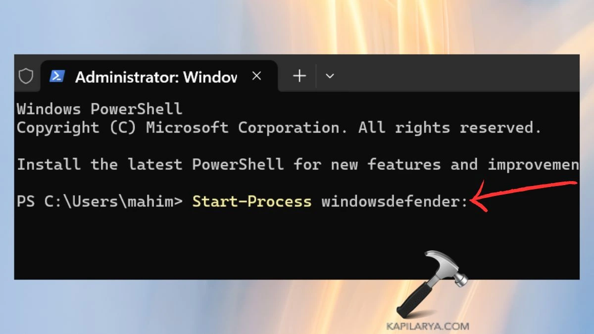 A Windows PowerShell egy másik kifinomult technika a Windows Security megnyitásához a Windows 11 rendszerben.