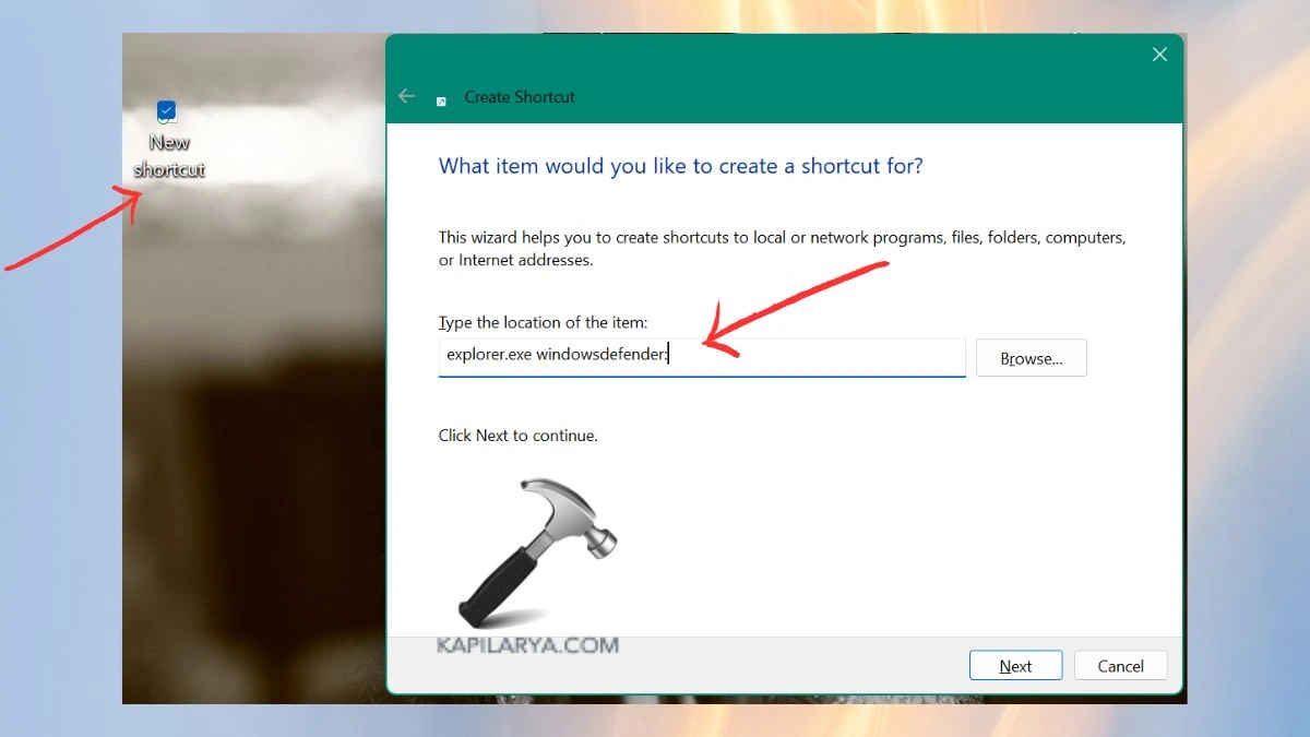 Ez segít létrehozni egy parancsikont a Windows Security egyszerű és gyors megnyitásához.