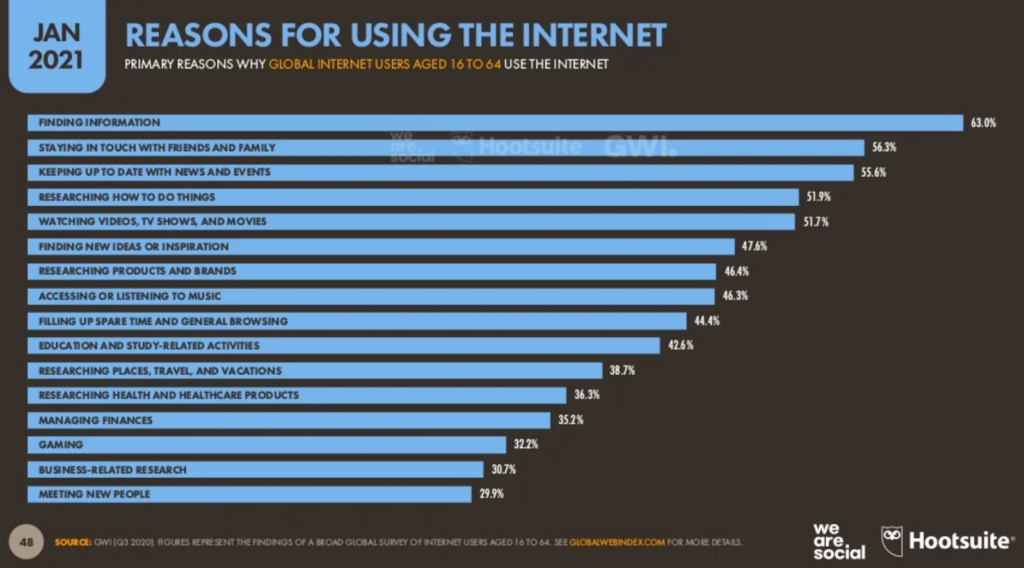 Információkat keresünk. Tartjuk a kapcsolatot szeretteinkkel. Folyamatosan követjük a híreket, és megtanulunk új dolgokat csinálni. Filmeket és tévét nézünk, zenét hallgatunk és játszunk. Ezek a mi érdekeink nemtől függetlenül.