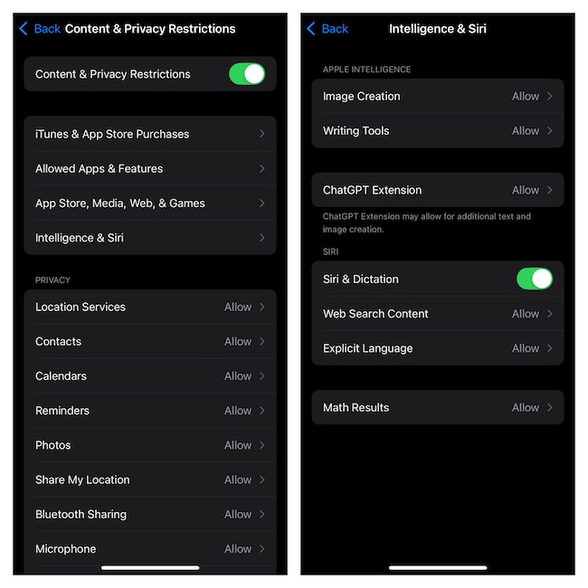 Miközben finomítja az iPhone-ját a fokozott magánélet és biztonság érdekében, valószínűleg teljesen letiltotta a Siri-t. Ennek a lehetőségnek a kizárása érdekében nézd meg alaposan a tartalom és az adatvédelmi korlátozás beállítását.