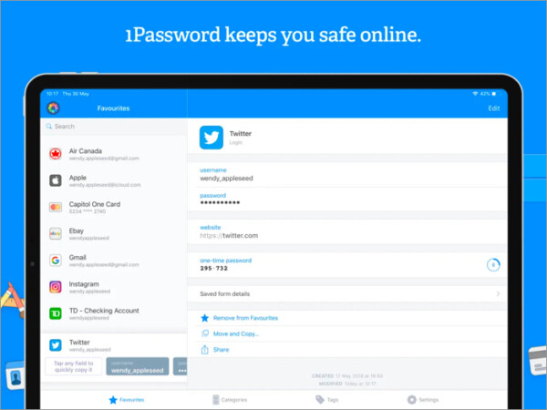 A 1Password hitelesítőként is működik; tárolhatja a kéttényezős hitelesítési kódokat, és bármikor elérheti azokat. Ezenkívül erősen figyeli a meglévő jelszavakat, és figyelmeztetést küld, ha a jelszó veszélybe került és módosításra szorul.