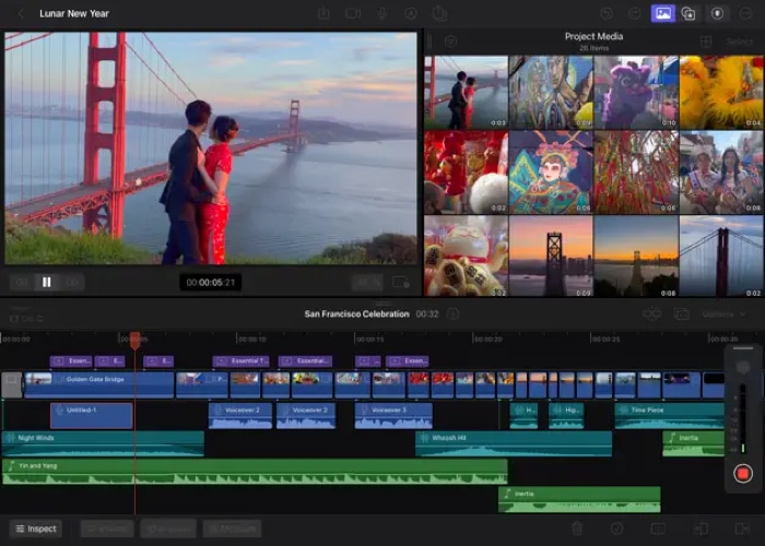 Az alkalmazás egy hatalmas könyvtárat is kínál előre elkészített címekből, átmenetekből, effektusokból és színbesorolási beállításokból. Alternatív megoldásként a projekthez ideális hangzás érdekében csökkentse a háttérzajt, javítsa a beszéd tisztaságát, alkalmazzon hangeffektusokat, vagy vegyen fel zeneszámot. Összességében tehát a Final Cut Pro a legjobb videószerkesztő alkalmazás az iPad számára.
