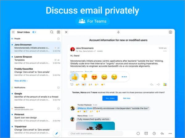 A Spark Mail szinte mindent megkap, amit egy intelligens e-mail-kezelő alkalmazástól szeretne. Kezdetnek az intuitív felhasználói felület tanulmányozza az Ön viselkedését, és valóban személyes élményt hoz létre, amely gyors, együttműködik és jól illeszkedik az iPad nagy képernyőjéhez.