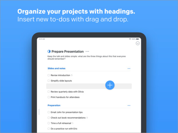 Teendőket, emlékeztetőket vagy jegyzeteket is létrehozhat, ha elküldi őket a Dolgok szolgáltatásnak. Ezenkívül támogatja az Apple Pencilt, a billentyűparancsokat és számos további funkciót.