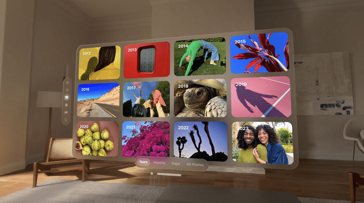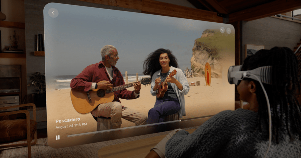 A Vision Pro lehetővé teszi a felhasználók számára, hogy emlékeiket rögzítsék és újraéljék térbeli fényképek és videók segítségével. A Spatial Audio fokozza a magával ragadó élményt, a felhasználók pedig életnagyságban tekinthetik meg fotóikat és videóikat, ragyogó színekkel és részletekkel.