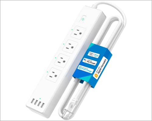 Ha a legjobb HomeKit elosztót keresi alacsony áron, ne keressen tovább, és szerezze be a Meross intelligens csatlakozódugós elosztót. 4 AC aljzattal (egyénileg vezérelhető) és 4 USB-porttal (csoportvezérelt), valamint egy 6 láb hosszú túlfeszültségvédő hosszabbítóval rendelkezik, 15 A kimenettel. Bár kompatibilis az Apple HomeKittel, ezen az elosztón megtalálja az Alexa, a Google Assistant és a Samsung SmartThings támogatását.