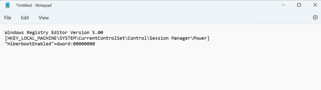 “HiberbootEnabled”=dword:00000000