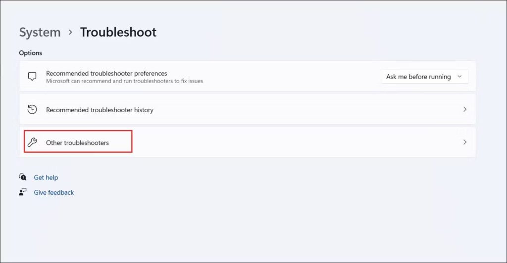 3. lépés:Kattintson az Egyéb hibaelhárítók elemre.