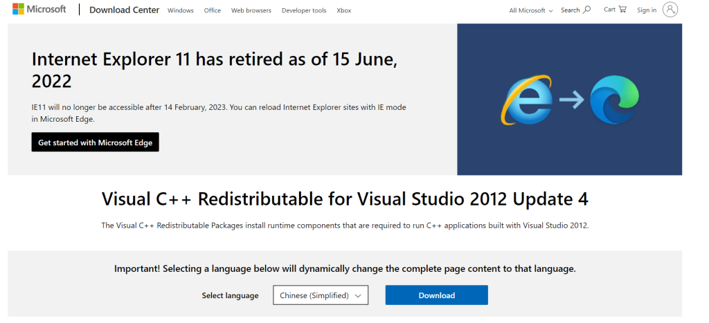 Az msvcr110.dll fájl beszerzéséhez keresse meg aVisual C ++ újraelosztható a Visual Studio 2012 frissítéséhez 4 weboldal- Ezen az oldalon átfogó részleteket fedez fel, beleértve a telepítési útmutatásokat és a rendszer előfeltételeit.