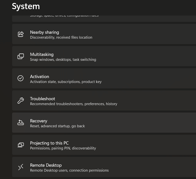 3. lépés: Keresse meg a bal oldalon található „Recovery” fület.