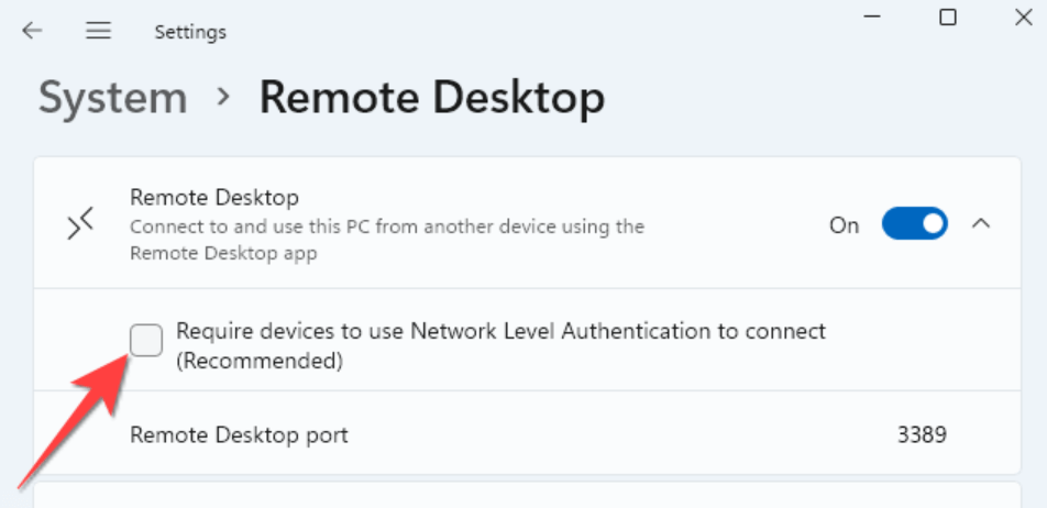2. LÉPÉS =Győződjön meg arról, hogy be van jelölve az Eszközök megkövetelése hálózati szintű hitelesítés használatához a csatlakozáshoz (ajánlott) jelölőnégyzet.