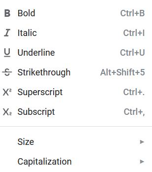 A szövegformázási parancsikonok egy része a legtöbb íróalkalmazásban gyakori, és valószínűleg már ismeri őket.