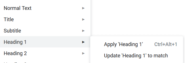 | Ctrl + Alt + [1-6] | Módosítja a címsor stílusát. Az 1 és 6 közötti szám határozza meg az alkalmazandó stílust. |