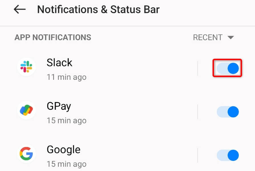 Az egyik ok, amiért a Slack nem küld értesítéseket, az az, hogy kikapcsolta az eszközön az adott alkalmazás figyelmeztetéseit. Meg kell látogatnia az eszköz beállítási menüjét, és meg kell győződnie arról, hogy a Slack engedélyezi a figyelmeztetések küldését.