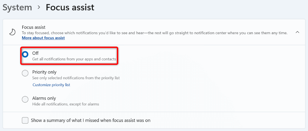 Ügyeljen arra, hogy ne válassza kiSemmivagy egyáltalán nem kap értesítést.