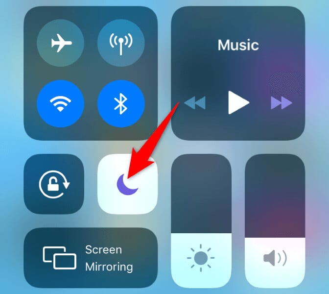 - NyitottVezérlőközpontlefelé csúsztatással a telefon képernyőjének jobb felső sarkából.