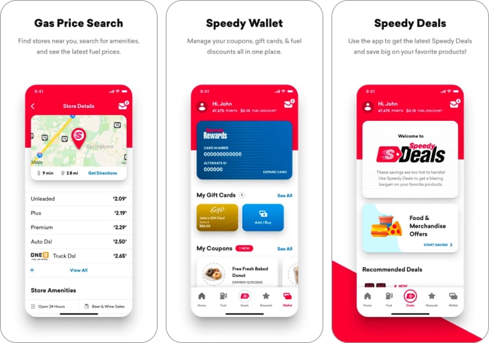 Egy speciális pénztárca szakasz nyilvántartást vezet a digitális kártyákról és kuponokról. Sőt, a praktikus shake-to-show opció lehetővé teszi a Speedy Rewards kártya azonnali megtekintését, anélkül, hogy bármely gomb megérkezne. Tehát biztosítsa a zökkenőmentes és gyors fizetéseket az alkalmazás segítségével.
