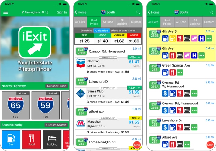 Úgy tervezték, hogy a közúti utazás simábbá váljon, és az alkalmazás az államközi, amikor megmutatja neked, mi áll az előttünk, beleértve a legolcsóbb benzinkút. Az IEXIT frissítve van az Egyesült Államokban a gázárakkal, és segít megtalálni a legolcsóbb állomást minden kijáratnál.