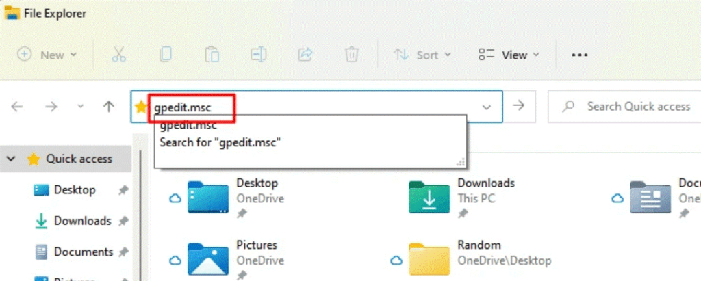 - A Helyi csoportházirend-szerkesztő megnyitásához futtassa a következő parancsot, vagy másolja és illessze be, majd nyomja meg az Enter billentyűt.