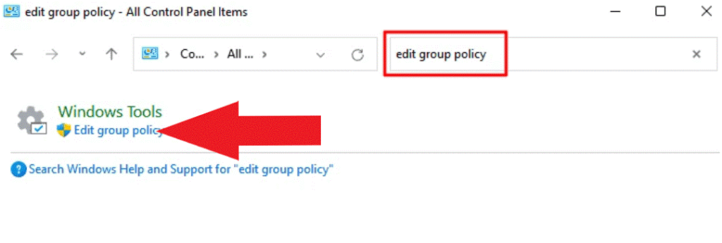 - A Helyi csoportházirend-szerkesztő eléréséhez válassza a lehetőségetCsoportházirend szerkesztésea Windows Eszközök alatt.