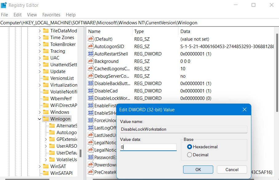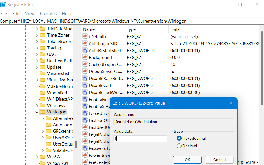 HKEY_LOCAL_MACHINESOFTWAREMicrosoftWindows NTCurrentVersionWinlogon