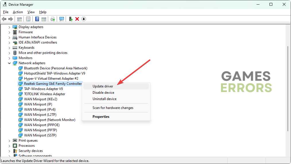 - Kattintson a jobb gombbal az internetkapcsolathoz használt eszközre, és válassza kiFrissítse az illesztőprogramot-