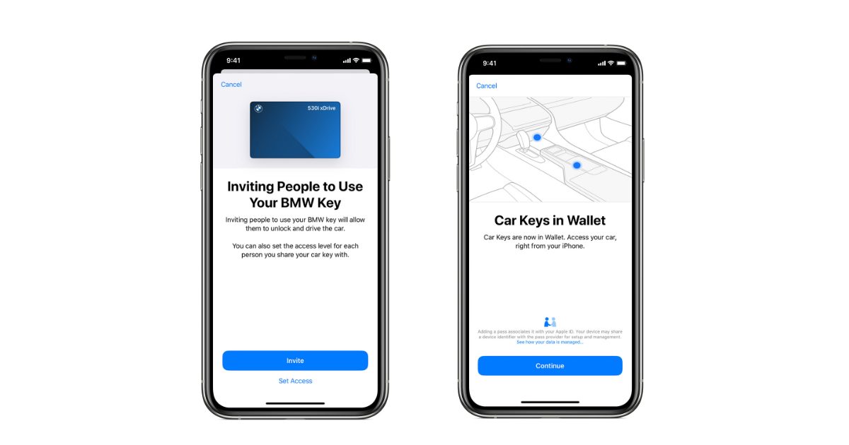 Az Apple a 2020-as WWDC rendezvényen bemutatta az autókulcsokat, amely az iPhone és az Apple Watch Wallet alkalmazásában tárolt autókulcsainak digitális másolata. A digitális autókulcsok NFC-technológiával működnek, amely lehetővé teszi a felhasználók számára az autók egyszerű bezárását, feloldását és elindítását iPhone-on és Apple Watchon keresztül, és nincs szükség a fizikai kulcstartó hordozására. A digitális kulcsok megoszthatók a családdal vagy a barátokkal olyan üzenetküldő alkalmazásokon keresztül, mint a Messages, Mail, WhatsApp és AirDrop, és az iCloudon keresztül kezelhetők.