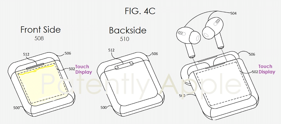 A nemrégiben közzétett szabadalom szerint az Apple feltárja annak lehetőségét, hogy beépített érintőképernyős kijelzőt hozzáadjon az AirPods tokjához, amely lehetővé tenné a felhasználók számára az audioforrások ellenőrzését és a csatlakoztatott eszközhöz kapcsolódó alkalmazások kölcsönhatását.