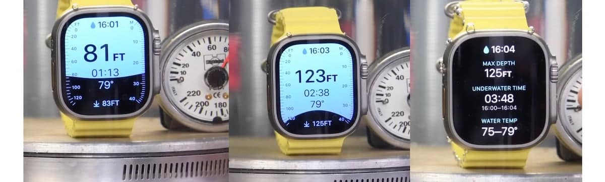 Az Apple Watch Ultra kizárólag egy mélységmérővel rendelkezik vízhőmérséklet -érzékelővel a víz alatti tevékenységekhez. Az új mélység alkalmazásba integrálva az Apple Watch Ultra képes mérni a maximális mélységet (akár 130 láb vagy 40 méter), a víz hőmérsékletét és az időtartamot a víz alatt.