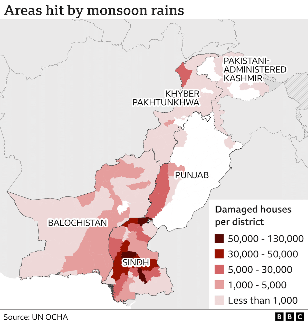 A jelenlegi természeti csapás a legrosszabb, mint a 2010-es árvíz, és az országnak égetően szüksége van forrásokra a szabad ég alatt élők ellátásához, mert házaikat elönti a víz. BBCjelentésekethogy: