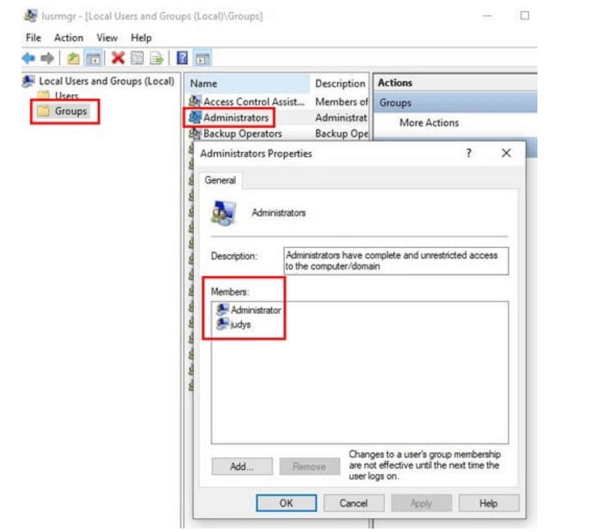 A helyi felhasználók és a csoportok funkciója szerepel a számítógépes kezelő segédprogramban, és felhasználható a fejlett beállítások elérésére és manipulálására egy Snap-In használatával.