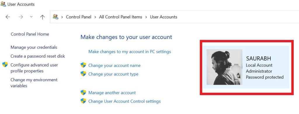 - A beállítások ablak jobb oldalán ellenőrizze aprofilnév- Ha megtalálta'Adminisztrátor'Írja meg a profilját, ez azt jelenti, hogy fiókjának adminisztrátori jogosultságai vannak.