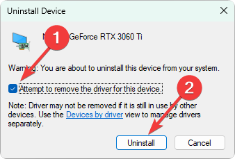 - EllenőrzésPróbálja meg eltávolítani az eszköz illesztőprogramjátÉs kattintson a KattintsonEltávolít-