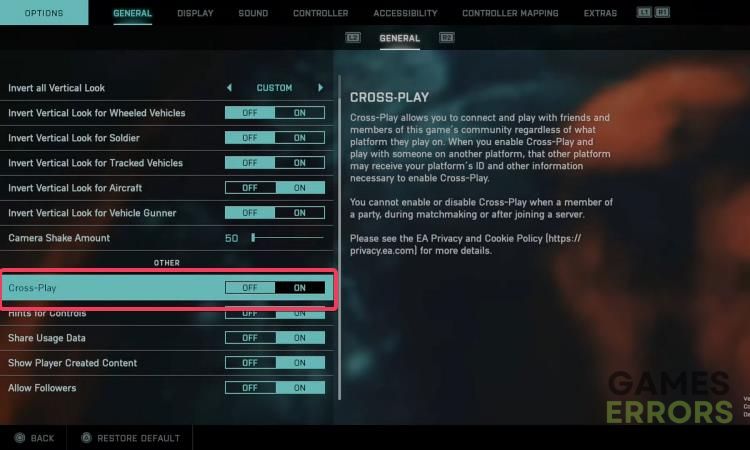 3. Kapcsolja ki a Crossplay -t a Battlefield 2042 -ben
