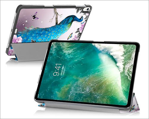 Válassza ezt a fólióborítót a Fintie-től, hogy elbűvölő megjelenést kölcsönözhessen iPadjének. A tok puha vegán bőrből készült, és többféle színben kapható. És ami felkeltette a figyelmemet, az a szerelemfa, a kék árnyalatai és a dzsungel éjszaka.