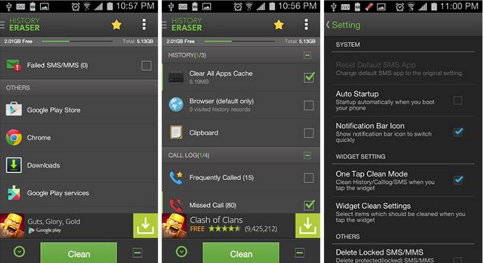 Mindegyiket egyetlen kattintással vagy választással megtisztíthatja. Root nélkül működik, és a History Eraser is ingyenes.