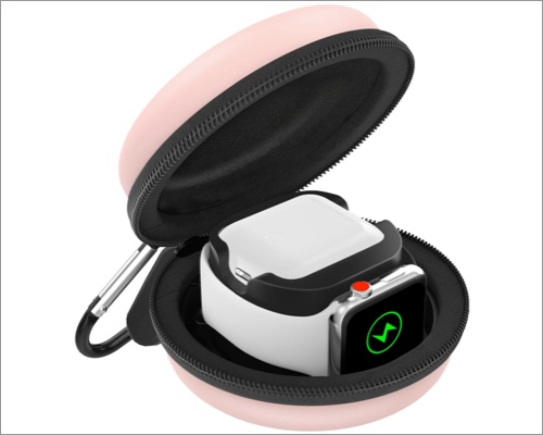 Ha az Apple Watch tárolására vagy utazására van szüksége, nézd meg ezt a praktikus hordtáskát a Moko -tól. Védi az órát és más kis eszközöket, például airpodokat, utazás közben, vagy ha nem használatban van.