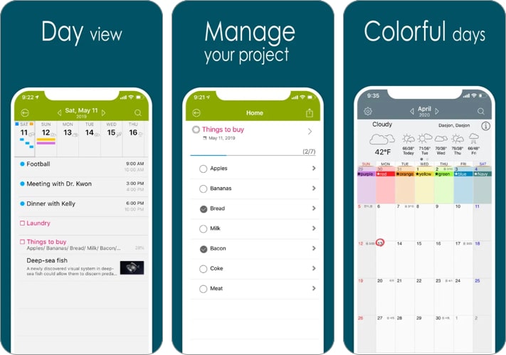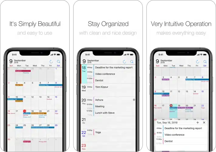 Kifejezetten az iPhone felhasználók számára, az alkalmazás számos olyan funkcióval rendelkezik, mint a hónap/napi nézet, az esemény címe, a mini felbukkanó ablak megosztása napi események stb. Az alkalmazás zökkenőmentesen szinkronizálódik a beépített iOS naptárral és a Google Naptárral.