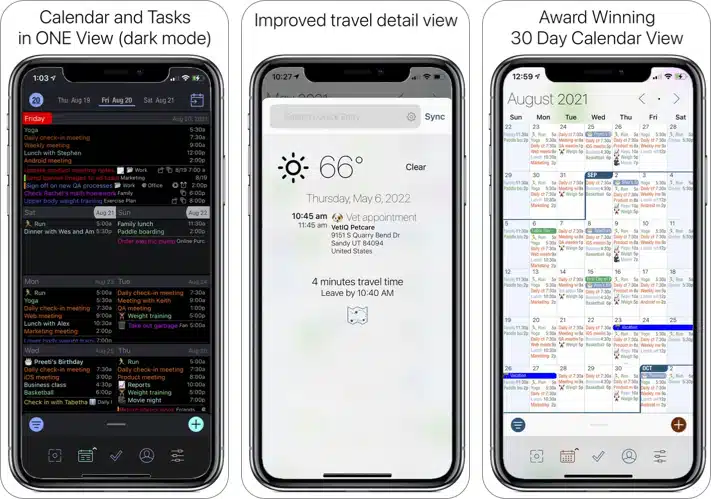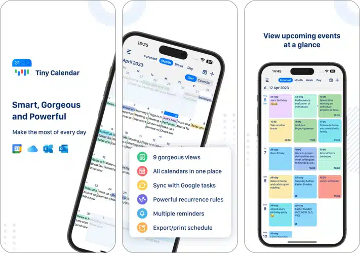 Ez az egyik számos hasznos és modern funkcióval tele van. Az első dolog, ami tetszett az alkalmazásban, az, hogy könnyen szinkronizálódik a Google, az Outlook, az Ical, a Yahoo és az Icloud. Ezenkívül át kell váltania a nézetét olyan lehetőségekről, mint a lista, a nap, a hét, a napirend, az év és a hónap. Az alkalmazás kompatibilis az AirDrop & AirPrint -rel, és Touch ID és Face ID védelemmel érkezik.