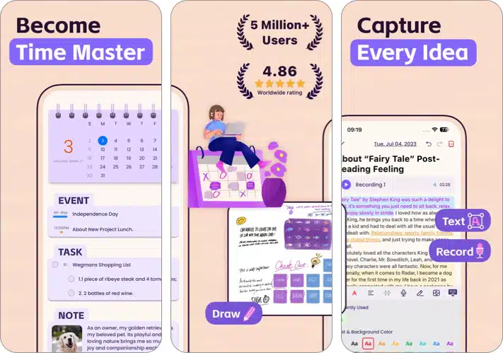 Ha te vagy az, aki szereti a menedzselt életet élni, az alkalmazás tökéletesen illeszkedik az Ön számára. Miközben az alkalmazás ingyenesen telepíthető, egy Pro verzióval rendelkezik, amelyhez fizetni kell. Ebben szinkronizálja az eseményeit az iOS naptárral, manuálisan az időréssel, az egész napos/napi események támogatásával, az egyes feladatok rendszerének emlékeztetőjével és még sok mással. Az alapvető jellemző azonban a Notes funkcionalitás, amely lehetővé teszi minden nap korlátlan jegyzetét.