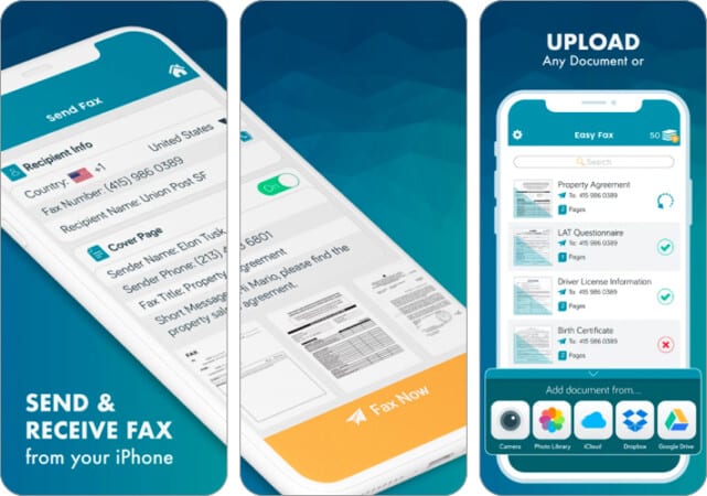 Ezenkívül az alkalmazás lehetővé teszi a tömeges faxolást, több számmal világszerte. Mivel az alkalmazás integrálódik a felhőbe, több képet és PDF-fájlt is küldhet a felhőalapú tárolóeszközökből, például az iCloudból, a Google Drive-ból és a Dropboxból.