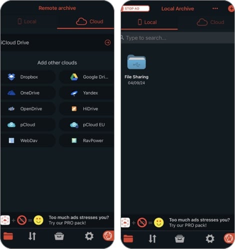 Ha a fájlkezelésről beszélünk, az alkalmazás olyan funkciókat kínál, mint a fájlcímkézés, a tömörítés/kitömörítés, a dokumentummegosztás és a fogd és vidd funkciók. Ezen kívül importálhat fájlokat a felhőalapú tárolási szolgáltatásokról, a WebDav-ről és a közeli eszközökről. Ha már a felhőalapú tárolási szolgáltatásokról beszélünk, a Documents by Readdle kompatibilis az olyan főbb szolgáltatásokkal, mint a Dropbox, a Google Drive és az iCloud. Ezekkel a szolgáltatásokkal kétirányú szinkronizálást is beállíthat az automatikus biztonsági mentések biztosítása érdekében.