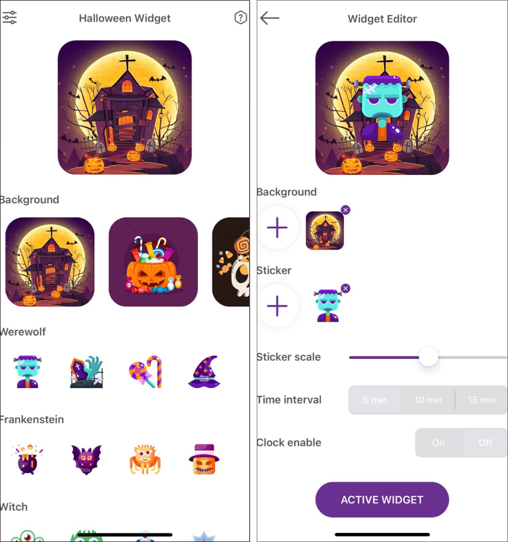 Az alkalmazás több száz és ezer Halloween-alapú kütyüvel rendelkezik, amelyeket hozzáadhat mind az iPhone, mind az iPad-hez. Készíthet egyéni kütyüket is az extra személyes érintéshez, beleértve az időjárási és órakorlátok testreszabását.
