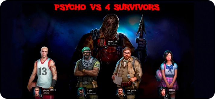 A játék célja hasonló - ölni vagy megölni. Hét különböző túlélő van, mindegyik egyedi piszkálással rendelkezik. Például a kosárlabda játékos gyorsabban futhat, mint más túlélők, és a rendőr gyilkosokat foghat meg - ha nem ölte meg először, azaz.